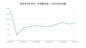 2020年11月,张家界市汽车总销量为1010辆,同比下降15.97%,环比增长9.19%。