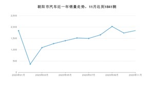 2020年11月,朝阳市汽车总销量为1841辆,同比增长2.39%,环比增长6.05%。