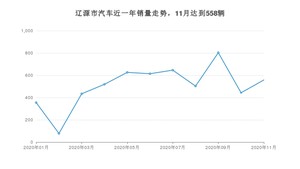 2020年11月,辽源市汽车总销量为558辆,同比增长27.4%,环比增长25.96%。