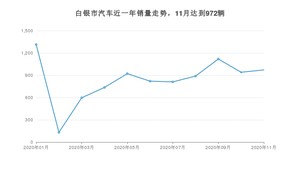 2020年11月,白银市汽车总销量为972辆,同比下降8.04%,环比增长3.29%。