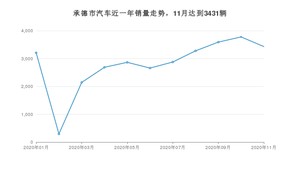 2020年11月,承德市汽车总销量为3431辆,同比增长15.44%,环比下降9.18%。