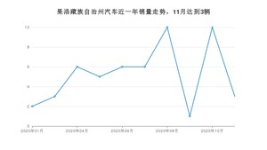 2020年11月,果洛藏族自治州汽车总销量为3辆,同比下降88%,环比下降70%。