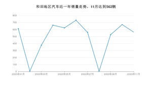 2020年11月,和田地区汽车总销量为562辆,同比下降33.25%,环比下降16.12%。