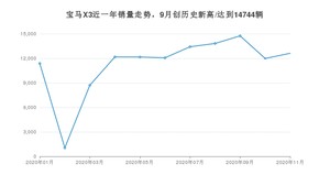 2020年11月,宝马X3销量为12621辆,同比增长13.64%,环比增长5.34%。