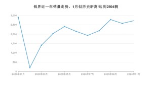 2020年11月,锐界销量为2717辆,同比增长1.53%,环比增长5.56%。