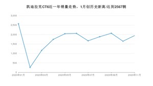 2020年11月,凯迪拉克CT6销量为1943辆,同比下降11.4%,环比增长17.97%。