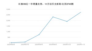 2020年11月,红旗H9销量为2745辆,环比增长43.49%。