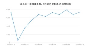 2020年11月,途昂销量为7328辆,同比增长0.25%,环比增长8.58%。