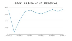 2020年11月,探界者销量为3760辆,同比下降0.77%,环比增长9.94%。