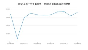 2020年11月,宝马1系销量为3605辆,同比下降9.42%,环比增长13.47%。