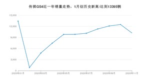2020年11月,传祺GS4销量为10198辆,同比增长76.77%,环比下降18.38%。