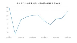 2020年11月,领航员销量为304辆,同比下降20.42%,环比增长37.56%。
