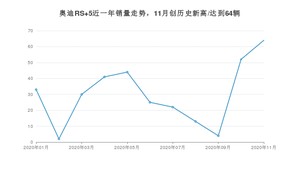 2020年11月,奥迪RS 5销量为64辆,同比增长3%,环比增长23.08%。
