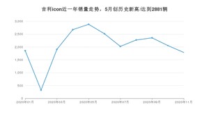 2020年11月,吉利icon销量为1786辆,环比下降13.05%。