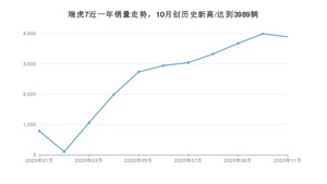 2020年11月,瑞虎7销量为3892辆,同比增长792.66%,环比下降2.43%。