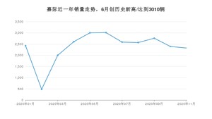 2020年11月,嘉际销量为2322辆,同比下降3.81%,环比下降2.97%。