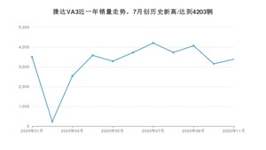 2020年11月,捷达VA3销量为3386辆,同比增长28.21%,环比增长7.42%。