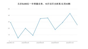2020年11月,北京BJ90销量为25辆,同比增长400%,环比下降41.86%。