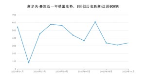2020年11月,高尔夫·嘉旅销量为338辆,同比下降54.08%,环比增长9.03%。