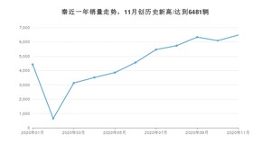 2020年11月,秦销量为6481辆,同比增长75.4%,环比增长6.37%。