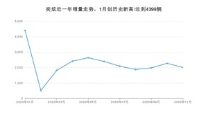 2020年11月,奕炫销量为2008辆,同比下降49.14%,环比下降11.74%。