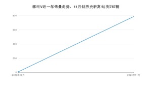 2020年11月,哪吒V销量为787辆,环比增长11%。