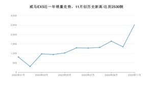 2020年11月,威马EX5销量为2530辆,同比增长133.83%,环比增长88.1%。