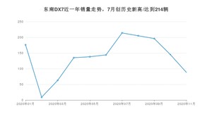 2020年11月,东南DX7销量为88辆,同比下降58.1%,环比下降39.31%。