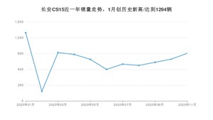 2020年11月,长安CS15销量为903辆,同比下降27.7%,环比增长14.02%。