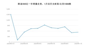 2020年11月,捷途X95销量为539辆,同比增长3%,环比增长5.27%。