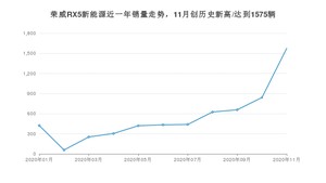 2020年11月,荣威RX5新能源销量为1575辆,同比增长177.78%,环比增长87.28%。