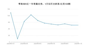 2020年11月,零跑S01销量为77辆,同比下降65.32%,环比持平。