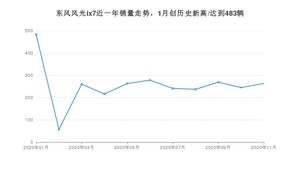 2020年11月,东风风光ix7销量为263辆,同比增长3%,环比增长7.35%。