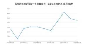 2020年11月,北汽新能源EC5销量为449辆,同比增长17.54%,环比下降7.8%。