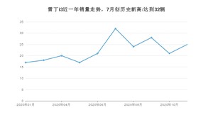 2020年11月,雷丁i3销量为25辆,同比增长38.89%,环比增长19.05%。