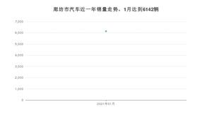2021年1月,廊坊市汽车总销量为6142辆,同比下降13.3%。