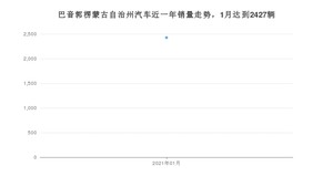 2021年1月,巴音郭楞蒙古自治州汽车总销量为2427辆,同比增长32.19%。