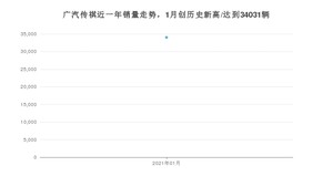 在国内市场上,广汽传祺在2021年1月的销量为34031辆,同比增长4.31%,
