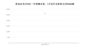 2021年1月,凯迪拉克CT5销量为5244辆,同比增长253.85%,