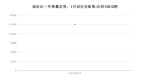 2021年1月,途岳销量为15012辆,同比增长11.9%,