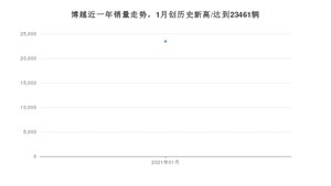 2021年1月,博越销量为23461辆,同比下降5.15%,