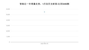2021年1月,智跑销量为5482辆,同比下降34.3%,