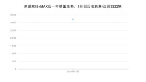 2021年1月,荣威RX5 MAX销量为3222辆,同比下降62.3%,