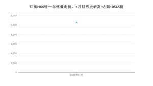 2021年1月,红旗HS5销量为10565辆,同比增长87.26%,