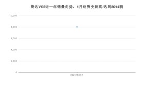 2021年1月,捷达VS5销量为8014辆,同比下降26.23%,