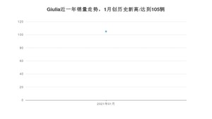 2021年1月,Giulia销量为105辆,同比增长10.53%,