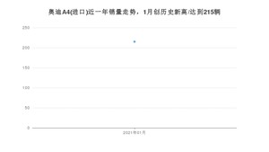 2021年1月,奥迪A4(进口)销量为215辆,同比下降60.62%,