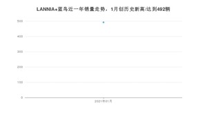 2021年1月,LANNIA 蓝鸟销量为492辆,同比下降88.86%,