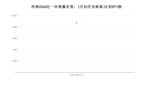 2021年1月,传祺GA6销量为871辆,同比下降50.79%,