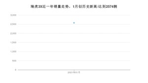 2021年1月,瑞虎3X销量为2574辆,同比增长145.14%,
